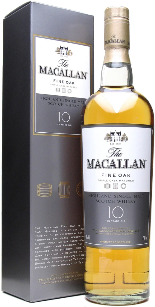 Виски Macallan 10 years Fine Oak, выпущенный компанией Макаллан, по праву считается великолепным представителем коллекции Fine Oak.