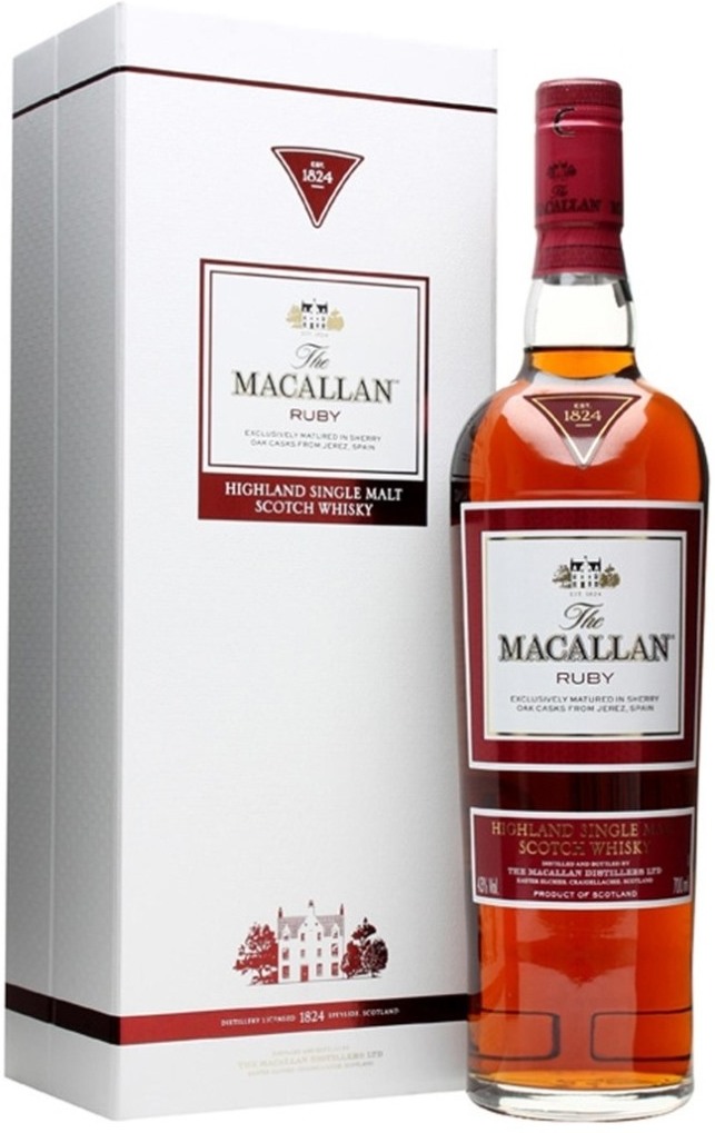 Macallan Ruby — старейший элитный шотландский односолодовый виски. Его идеальная репутация формировалась лучшими мастерами своего дела на протяжении почти 200 лет. Отличительной особенностью продукции линии Fine Oak является созревание в бочках трех видов. Хересные бочки из европейского дуба придают виски богатый аромат с нотками сухих фруктов, специй и шоколада. Хересные бочки из американского дуба добавляют тона лимона, кокоса и ириса, а дубовые бочки из-под бурбона — аромат цветов и сладкие нотки ванили и свежих фруктов. Виcки Macallan – непременный атрибут роскоши и стиля!