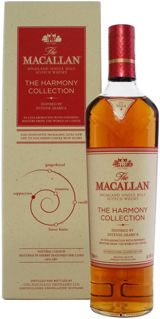 The Macallan, "The Harmony Collection" Intense Arabica — второй релиз инновационной коллекции "Гармони Коллекшн", который отправляет в чувственное путешествие по чудесному миру кофе, опираясь на навыки и опыт пяти экспертов. Производитель виски Macallan Стивен Бремнер представил два виски (Intense и Smooth) в этом релизе с ярко выраженными кофейными нотками, создав восхитительное сочетание кофе и виски. Стивен Бремнер изучил процесс создания кофе от поля до чашки со всемирно известными мастерами. Интенс Арабика — особый односолодовый виски, вдохновленный эфиопской арабикой. Ведь именно Эфиопия считается родиной качественного кофе. Односолодовый виски Интенс Арабика с интенсивным вкусом кофе приглашает Вас получить идеальные мультисенсорные впечатления.