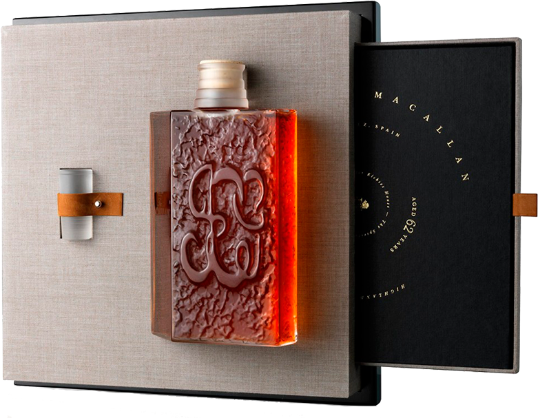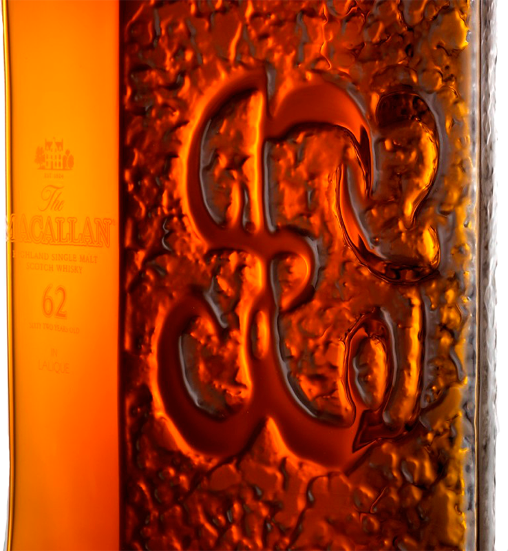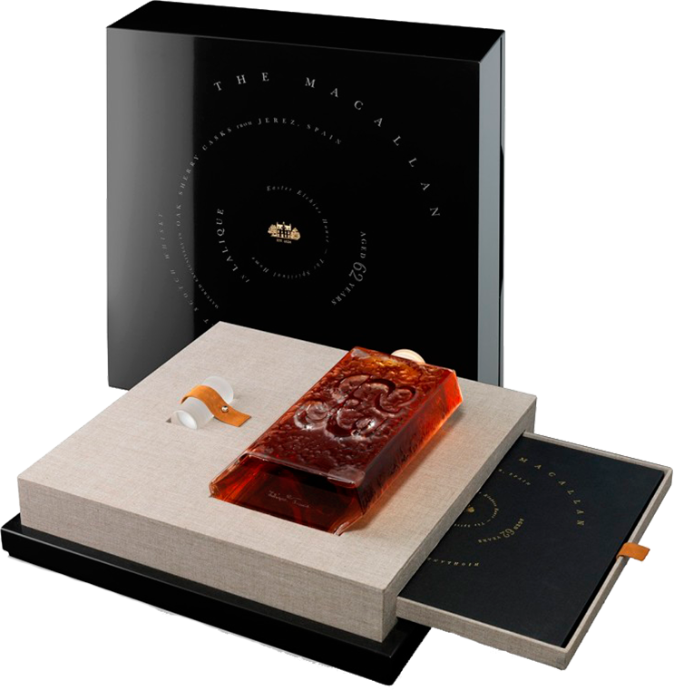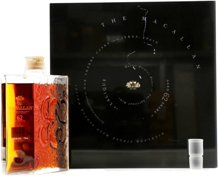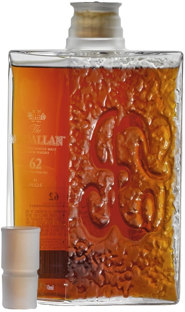 Макаллан Лалик 62-летний (The Macallan in Lalique V: The Spiritual Home 62 Y.O.). Своим появлением декантер ручной работы The Macallan in Lalique V: The Spiritual Home 62 YO продолжает начатую в 2005 году культовую серию Six Pillars Collection. В ней слились воедино усилия французских художников по хрусталю Lalique и шотландской дистиллерией The Macallan. Тираж розлива составил всего 400 декантеров.