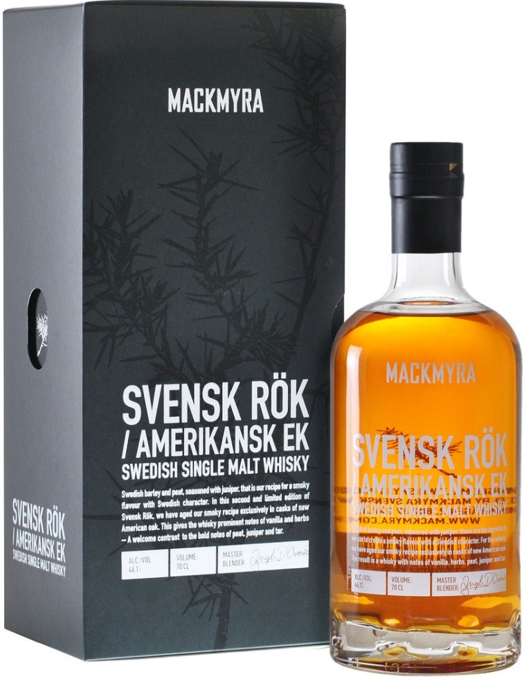 Mackmyra, Svensk Rok / Amerikansk Ek — второе лимитированное издание Svensk Rok, что означает "шведский дым" и указывает на особенности изготовления напитка. Односолодовый виски был выдержан исключительно в новых бочках из американского дуба в течение 5 лет, что придало напитку заметные ноты ванили и трав, составив приятный контраст смелым оттенкам торфа, можжевельника и дегтя. Идеей для создания виски послужила старая шведская традиция приправлять и консервировать пищу, наполняя ее можжевеловым дымом.