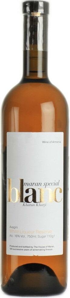 Avagini, Blanc — белое десертное вино, изготовленное из местных автохтонных сортов винограда, доминирующим в купаже сортом Хатун Харджи. Белые сорта винограда отлично вызревают в Вайоцдзорской области и приобретают высокую сахаристость. Вино изготавливается по традиционной технологии неполного естественного сбраживания сусла с последующим добавлением спирта, останавливающего процесс брожения. Так как содержание сахара в винограде не превышает 16-18%, то такое вино является полудесертным. После ферментации "Авагини" обязательно выдерживается в дубовых бочках, благодаря чему вино становится более глубоким и насыщенным.