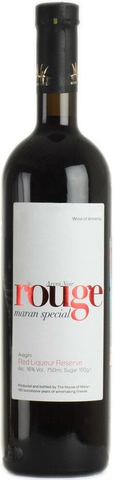 Avagini, Rouge — красное десертное вино, изготовленное из местных автохтонных сортов винограда: Арени Нуар, Аваги и Тозот, которые отлично вызревают и приобретают высокую сахаристость. Вино изготавливается по традиционной технологии неполного естественного сбраживания сусла с последующим добавлением спирта, останавливающего процесс брожения. Так как содержание сахара в винограде не превышает 16-18%, то такое вино является полудесертным. После ферментации "Авагини" обязательно выдерживается в дубовых бочках, благодаря чему вино становится более глубоким и насыщенным.
