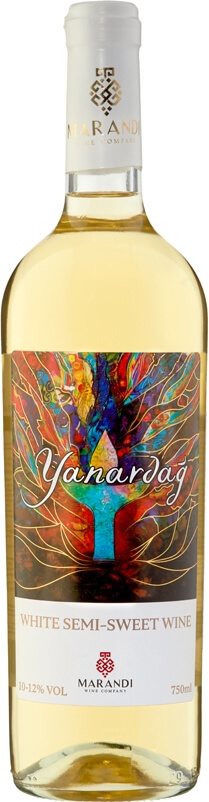 Yanardag, White Semi-Sweet — белое столовое вино, созданное из купажа винограда сортов Верментино и Шардоне. Винификация измельченных ягод проходит традиционным методом в стальных емкостях при контролируемой температуре. В момент достижения требуемого уровня сахара брожение останавливается. Вино обладает мягким, гармоничным вкусом и приятным цветочно-фруктовым ароматом. Оно прекрасно в качестве аперитива, отлично дополнит блюда из рыбы и птицы, сыры и фрукты.