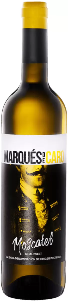 Marques de Caro, Moscatel — нежное белое полусладкое вино, созданное из винограда сорта Москатель, который выращивается в Валенсии. Наиболее примечательной особенностью региона является его однородный климат и топография. Регион расположен примерно на высоте 700 метров над уровнем моря. Местный смешанный климат имеет черты как средиземноморского, так и континентального типа. После сбора урожая, который осуществляется в момент оптимальной спелости ягод, виноград подвергается традиционной винификации при контролируемой температуре. Брожение принудительно останавливается путем резкого снижения температуры для сохранения естественной сладости. Вино составит отличную пару блюдам из белого мяса и рыбы, а также фруктовым десертам и выпечке.