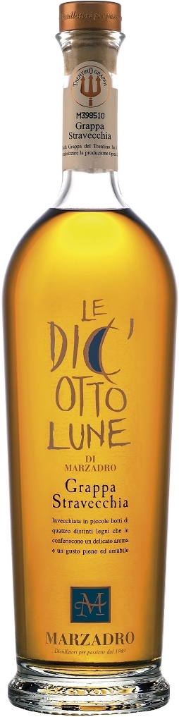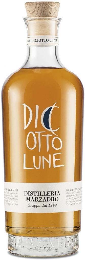 Marzadro, Le Diciotto Lune — "старая" (стравэккья) граппа от компании Marzadro, о чем свидетельствует пометка на этикетке (в переводе с итальянского "stravecchia" — старая). Граппы такого ранга выдерживают не менее 18 месяцев, и это условие стало идеей для названия напитка. "Le Diciotto Lune" ("Восемнадцать лун") указывает на срок выдержки граппы, подтверждая ее "почтенный возраст". Граппу получают путем дистилляции выжимок из виноградных сортов Марцемино, Терольдего, Мерло, Мускат и Шардоне, выращенных в регионе Трентино. Каждый из сортов приносит в общий купаж свои характерные особенности, обогащая вкус граппы и делая его более полным и насыщенным. Граппа проходит выдержку в бочках из дуба, ясеня и вишни, что также влияет на богатство характера и элегантность ее стиля.