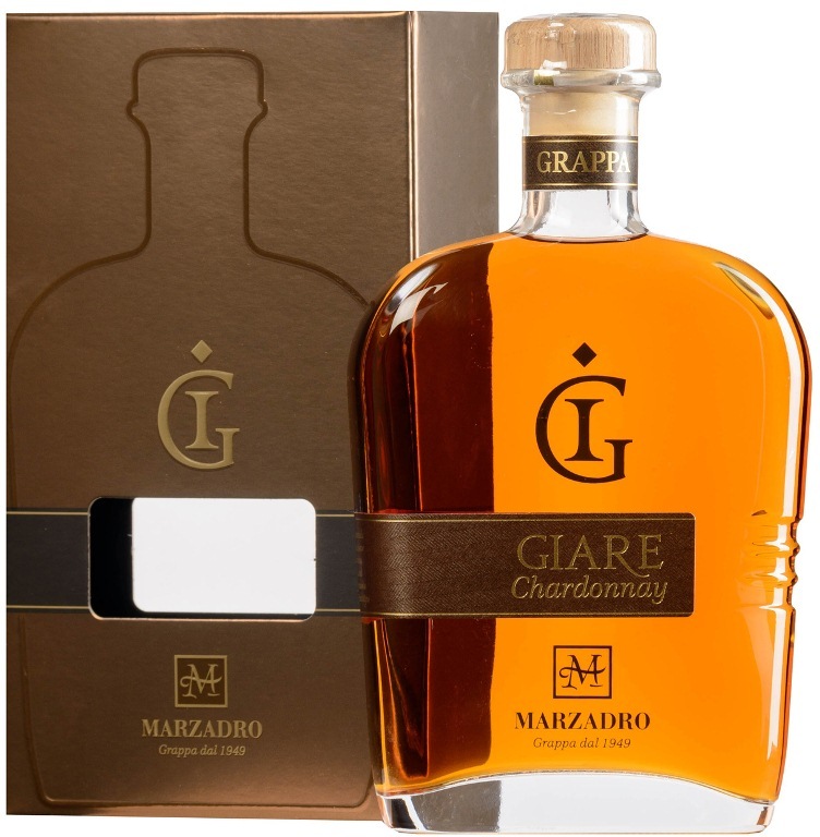 Marzadro, Le Giare, Chardonnay — выдержанная граппа, демонстрирующая прекрасный сортовой аромат и элегантный, сухой вкус. Сырьем для ее производства служат виноградные выжимки сорта Шардоне. Их подвергают паровой дистилляции, после чего полученный продукт выдерживают в 225-литровых дубовых бочках в течение 36 месяцев. При этом мастер дистилляции регулярно проверяет процесс созревания граппы, дегустируя ее вкусовые и ароматические качества, чтобы достичь уникального баланса в характеристиках напитка.