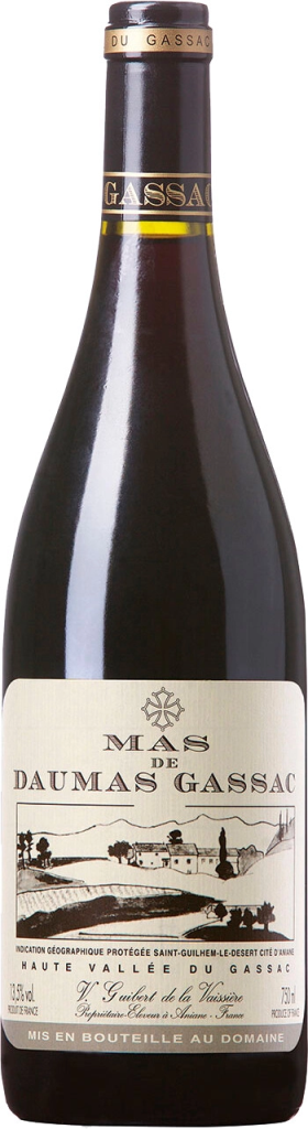 Бленд красного вина "Mas de Daumas Gassac" состоит из доминирующего Каберне Совиньон и еще 20 различных сортов винограда, выращенных на гравийных известково-глинистых почвах в коммуне Сан Гильем де Дезер. Урожай собирается вручную по достижении ягодами оптимальной спелости. Мацерация и ферментация в течение 20 дней осуществляется в стальных емкостях при строго контролируемой температуре, фильтрация не производится. Вино выдерживается на протяжении 12–15 месяцев в старых дубовых бургундских бочках. "Mas de Daumas Gassac" рекомендуется пить в первые три года, чтобы ощутить превосходные фруктовые ароматы, или открыть вино через 5–20 лет и насладиться его потенциалом. Вино рекомендуется декантировать за 3-4 часа до употребления.