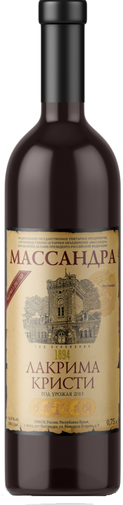 Массандра, Лакрима Кристи — яркое и выразительное десертное вино с богатым вкусом, характеризующееся шоколадными оттенками. Вино выдерживается в дубовых бочках не менее двух лет. С его названием связана интересная легенда — бог оплакивал грехопадение Люцифера и там, где упали его слезы, выросли виноградники, дающие урожай для вина "Lacryma Christi". Правдоподобие легенде придают потеки лавы на склонах Везувия, похожие на следы слез.