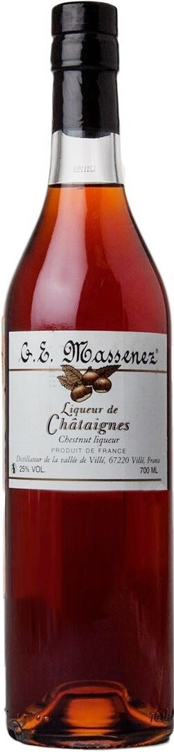 Massenez, Liqueur de Chataignes — элегантный ликер, который относится к редким разновидностям этого напитка. Особый сорт выращенного во Франции каштана используется для получения ароматического экстракта, который затем соединяют с высококачественным спиртом и сахарным сиропом. Главными достоинствами ликера являются красивый золотисто-коричневый цвет и мягкий орехово-пряный вкус. Чтобы изготовить такой ликер, у производителя Massenez есть свои секреты.
