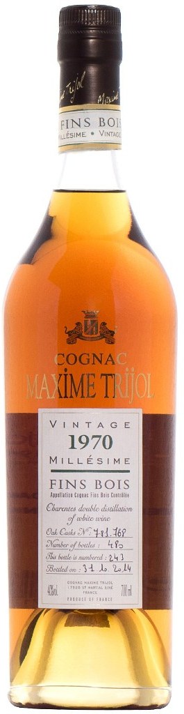 Для создания коньяка "Maxime Trijol" Fins Bois AOC, 1970 производитель использовал высококачественные коньячные спирты из урожая винограда 1970, собранного в регионе Фэн Буа. Коньяк подвергли двойной дистилляции в шарантских перегонных кубах. Выдержка дистиллятов длилась не менее 48 лет в бочках из французского дуба. Коньяк бутилировали 9 октября 2013 года, а его релиз насчитывает 340 бутылок.