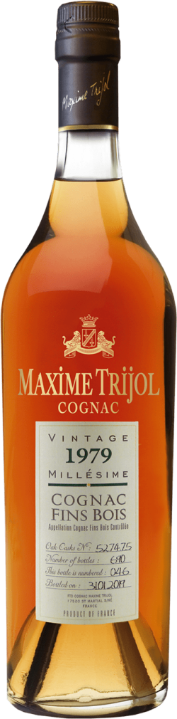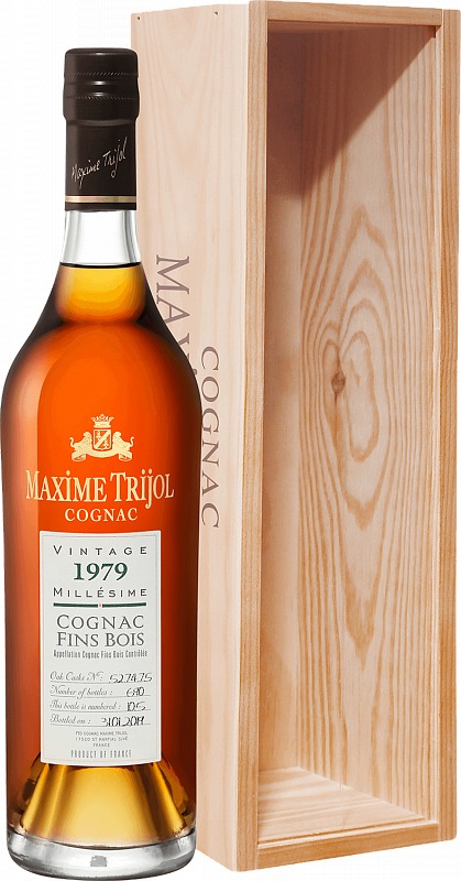 Для создания богатого, мощного, ароматного коньяка "Maxime Trijol" Fins Bois, 1979 производитель использовал высококачественные коньячные спирты, изготовленные из винограда урожая 1979 года, собранного в регионе Фэн Буа. Базовые вина из этого винограда подвергли двойной дистилляции в шарантских перегонных кубах. Выдержка дистиллятов в бочках из французского дуба длилась не менее 37 лет. Коньяк бутилировали 31 января 2019 года. Всего было выпущено 490 бутылок, каждая из которых имеет уникальный порядковый номер на этикетке.