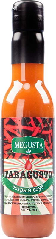 Соус Megusta "Tabagusto" предназначен для придания яркого жгучего приятного вкуса блюдам из мяса, птицы, морепродуктам, маринадам, супам, соусам и приправам к салатам. В основе соуса - изысканные и необыкновенные пряности, которые выращены в Латинской Америке.