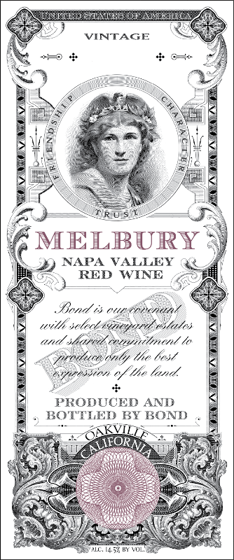 Bond – это экстраординарный проект владельца Harlan Estate, Билла Харлана. Его работа с Бобом Леви, направлена на поиск и выделение уникальных терруаров Долины Напа и производство 100% каберне совиньон с индивидуальным характером со всех определенных терруаров. Результат – каберне совиньон из Напы мирового класса, с потенциалом развития не менее 30 лет. В портфолио Бонда 5 виноградников. Melbury находится на крутых склонах к северу от озера Хеннесси, восточнее Рузерфорда. Площадь виноградника 7 акров, почвы наносные, глинистые. Pluribus расположен на высоте более 1000 футов на Спринг Маунтин в западной части Долины Напа. Это самый северный виноградник в портфолио Bond, его площадь 7 акров, почвы – чистые вулканические туфы. Самый южный виноградник – Vecina, ближайший сосед Harlan Estate, это западные холмы Долины Напа, обращенные к Оаквилль Коридор на севере и Юнтвиллю на юге. Площадь виноградник 11 акров, расположен он на высоте 200-330 футов. St. Eden – это единственный виноградник, расположенный на равнине долины. Его площадь 11 акров, находится севернее Оаквиль Кроссроуд, на почти пологих холмах. Виноградник Quella занимает 9 акров в восточной части Сент Элены, почвы старые аллювиальные, каменистые, смешанные с белыми туфами вулканического происхождения.