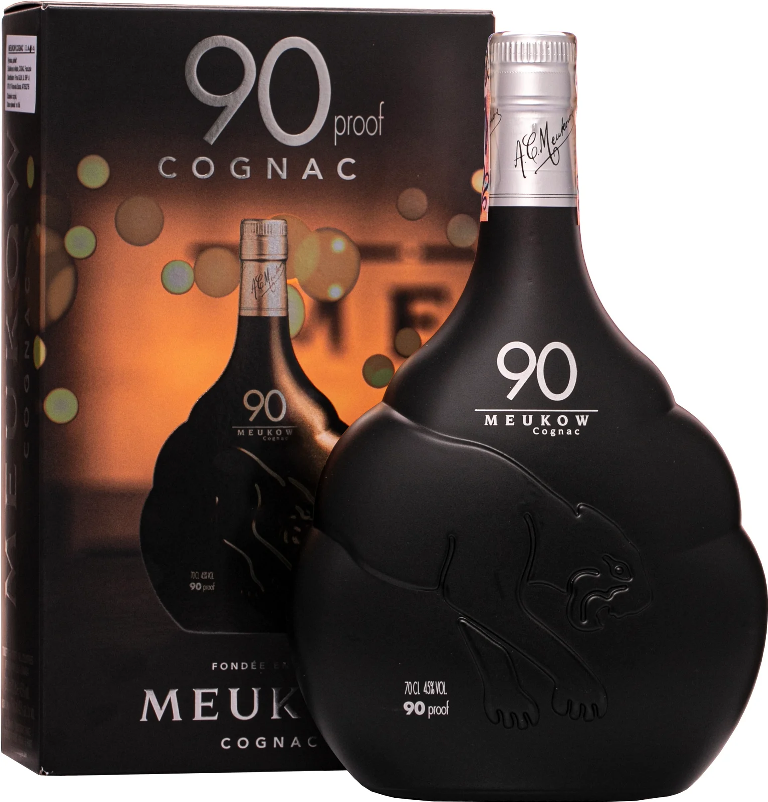 Meukow, "90 Proof" выдерживается в дубовых бочках около 6 лет, это единственный коньяк с крепостью 45%. Выпускается Меуков 90 Пруф в элегантной черной бутылке с кристально-прозрачной пантерой, которая открывает восхитительный цвет коньяка.