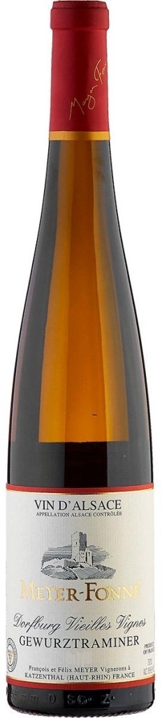 Gewurztraminer Dorfburg Grand Cru Vieilles Vignes соблазнит взыскательных гурманов пряно-цитрусовым ароматом и элегантным, хорошо сбалансированным вкусом, с тонкой кислотностью и минеральными нюансами. Виноград Гевюрцтраминер, который виноделы хозяйства Мейер-Фонне используют для создания этого вина, выращивают на органическом винограднике Дорфбург, имеющим высокий статус Гран Крю. Старые лозы, произрастающие на оолитово-известняковых почвах, хорошо адаптировались к местному микроклимату. После ручного сбора винограда, осуществляется ферментация и выдержка вина на тонком осадке. Охлажденное вино прекрасно в качестве аперитива, как дополнение к пряным блюдам, приправленным шафраном и карри, а также в сочетании с разнообразными сырами.