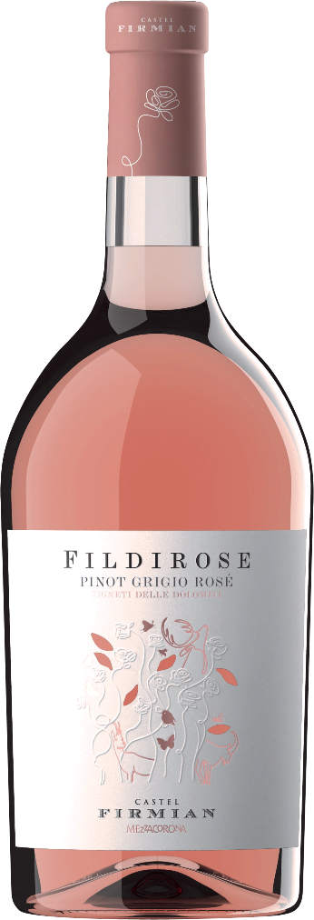 Castel Firmian, Fildirose, Pinot Grigio Rose — оригинальное розовое итальянское вино с приятным фруктовым ароматом и мягким, освежающим вкусом. Вино создано из отборного винограда сорта Пино Гриджио, являющегося визитной карточкой самого северного региона Италии — Трентино. Этот сорт был завезен сюда из Германии в начале ХХ столетия и прижился благодаря относительно прохладному климату. Виноградники, принадлежащие компании Монфорт, произрастают у подножия Альп на песчаных почвах на высоте 300 метров над уровнем моря. Это очень древние виноградники, когда-то принадлежащие епископу города Трентино. Виноградные лозы культивируются с уважением к природному биологическому балансу и с особым акцентом на качество. После ферментации вино выдерживается на осадке в течение 3-4 месяцев перед розливом по бутылкам.