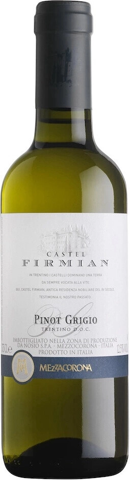 Castel Firmian, Pinot Grigio — прекрасное белое вино, которое изготавливают из одноименного винограда сорта Пино Гриджио, выращенного на собственных виноградниках. Вино производят традиционным методом с кратковременной мацерацией на кожице для максимальной передачи разнообразия ароматических оттенков. Брожение проходит в металлических емкостях при низких температурах ( между 10 и 20°C). Вино "Кастель Фирмиан" Пино Гриджио — очень стильное и элегантное, с хорошей минеральностью и прекрасным балансом. Классификация DOC указывает на то, что вино отвечает строгим требованиям к терруару и сорту винограда, соблюдению норм технологического процесса, содержанию алкоголя. Перед выпуском вино подвергают строгой дегустации.