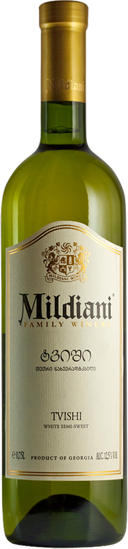 Mildiani, Tvishi — традиционное грузинское вино, в производстве которого используется отборный виноград сорта Цоликаури, произрастающий на виноградниках микрозоны Твиши в регионе Лечхуми. После сбора урожая, ягоды подвергаются винификации, проходящей при контролируемой температуре.