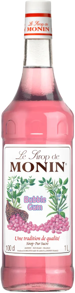 Monin, Bubble Gum — яркий, сладкий сироп, вкус которого напоминает жевательную резинку. Сироп является отличной составляющей для коктейлей, его можно добавлять к выпечке, тортам, мороженому и десертам.