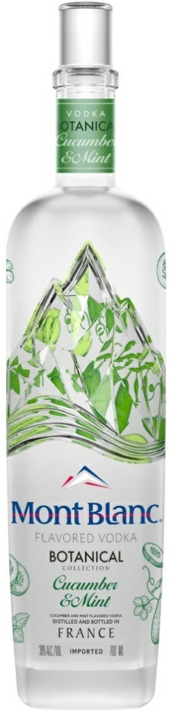 Mont Blanc, Botanical Collection, Cucumber & Mint — оригинальная водка со вкусом и ароматом мяты и огурца. На бутылке филигранно выточен силуэт горы Монблан, а матированное стекло создает эффект запотевшей от холода бутылки.