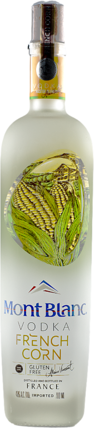 Mont Blanc, French Corn — ультра-премиальная водка, в производстве которой используется отборная кукуруза и чистейшая вода из источника Анжаль-Шампань. На бутылке филигранно изображен сельский пейзаж, а матированное стекло создает эффект запотевшей от холода бутылки.