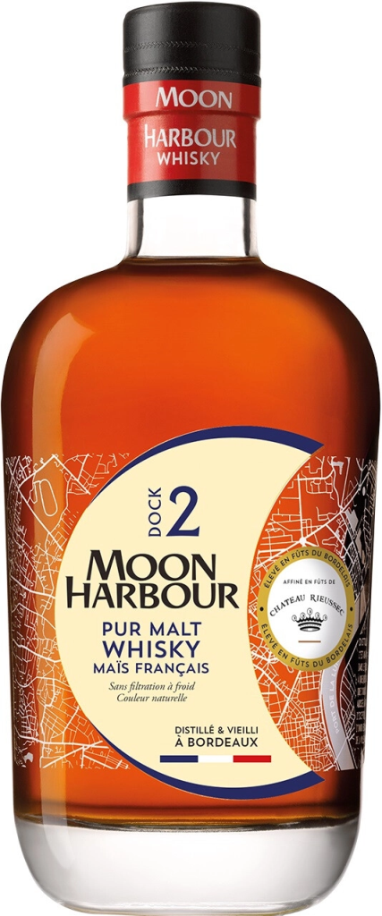 Кукуруза для "Dock 2" Pur Malt Chateau Rieussec поступает из сельских хозяйств Новой Аквитании. От качества исходного сырья на 25% зависит качество будущего виски. После сушки солод измельчают, получается крупа, которую смешивают с кипятком в заторном чане, чтобы превратить крахмал в сахар. Полученное сусло представляет собой полупрозрачную жидкость, ароматную, сладковатую и слегка липкую. Ферментированное сусло называют брагой. Правильно проведенная ферментация — это 25% успеха будущего виски. Для дистилляции компания Moon Harbour использует уникальные медные аламбики, изготовленные вручную семейной компанией Stupfler. Тесный контакт между медью и дистиллятом обеспечивает абсолютно уникальную и удивительную цветочную свежесть. Брага перегоняется только один раз, что позволяет получить исключительный спирт, округлость которого является первоклассной. Далее виски выдерживается не менее 3-х лет в бочках из-под сладких вин Сотерна Шато Рьесек в историческом бункере времен Второй Мировой Войны со стенами толщиной около 6 метров, а затем дозревает в только что опустошенных бочках этого же Шато из-под вина Гран Крю в течение 6 месяцев. На этом этапе виски приобретает насыщенный цвет, богатый аромат и мягкий вкус. Срок выдержки и качество используемых бочек — это оставшиеся 50% триумфа готового напитка. Виски разливается без холодной фильтрации и окрашивания карамелью при крепости 45,8%. Виски выпускается в красивой коробке, что делает его отличным подарком для любого торжественного случая.