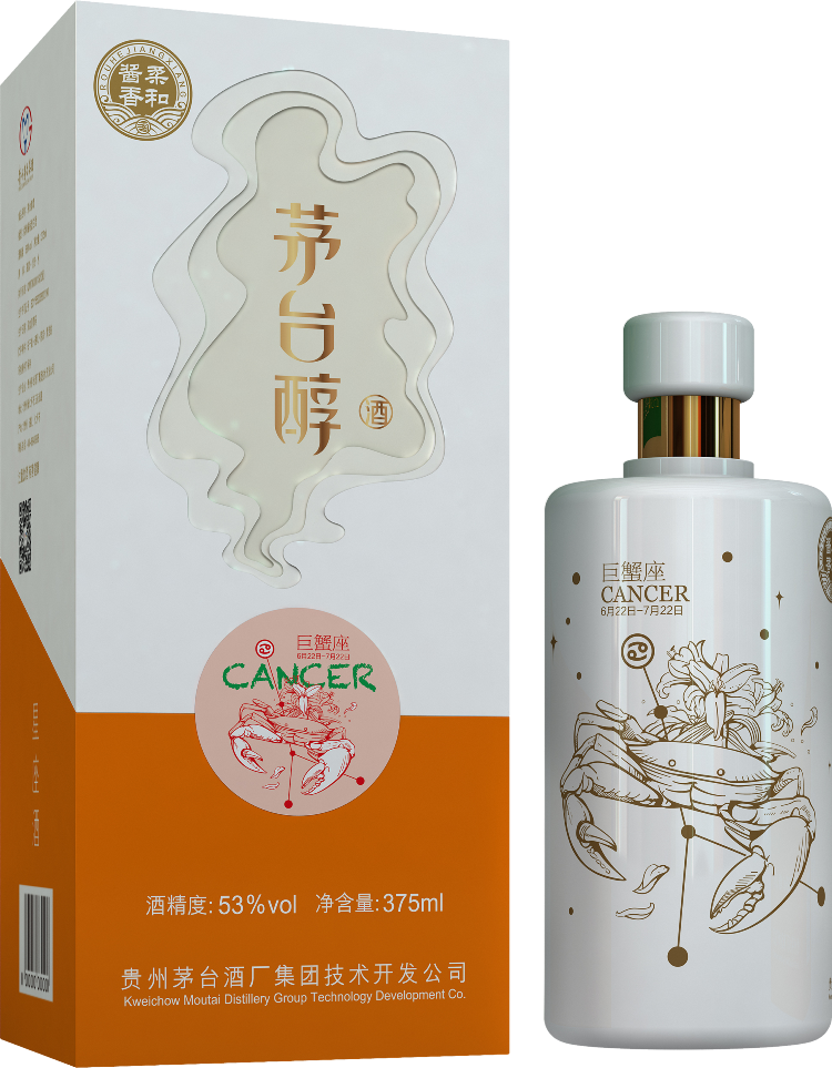 Moutai Chun, Astrology Edition, Cancer — премиальный китайский напиток в небольшом формате объема. Это 53-градусный байцзю, который создан по эксклюзивной технологии Маотай из такого сырья, как сорго и пшеница. Каждый может найти свой знак зодиака в Созвездии Маотай. Новая технология изготовления бутылки подходит для повторного использования и отражает важность защиты окружающей среды. Это памятный подарок имениннику, рожденному под знаком Рака.