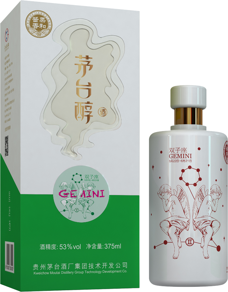 Moutai Chun, Astrology Edition, Gemini — премиальный китайский напиток в небольшом формате объема. Это 53-градусный байцзю, который создан по эксклюзивной технологии Маотай из такого сырья, как сорго и пшеница. Каждый может найти свой знак зодиака в Созвездии Маотай. Новая технология изготовления бутылки подходит для повторного использования и отражает важность защиты окружающей среды. Это памятный подарок имениннику, рожденному под знаком Близнецов.