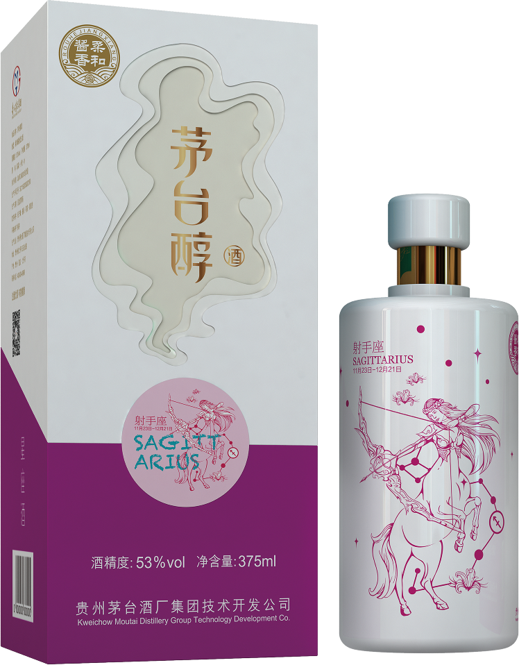 Moutai Chun, Astrology Edition, Sagittarius — премиальный китайский напиток в небольшом формате объема. Это 53-градусный байцзю, который создан по эксклюзивной технологии Маотай из такого сырья, как сорго и пшеница. Каждый может найти свой знак зодиака в Созвездии Маотай. Новая технология изготовления бутылки подходит для повторного использования и отражает важность защиты окружающей среды. Это памятный подарок имениннику, рожденному под знаком Стрельца.
