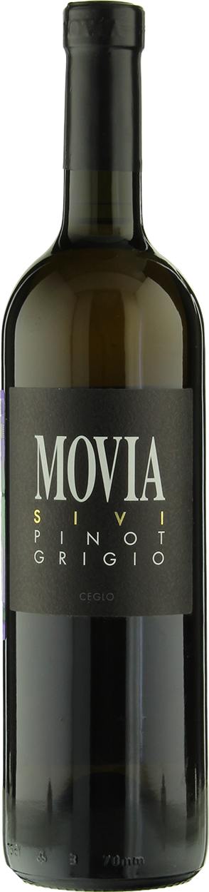 "Мовиа" Сиви Пино — сухое, ароматное белое вино, обладающее удивительной сложностью и глубиной характера. Вино изготавливается из винограда сорта Пино Гриджио (Сиви Пино) позднего сбора, который снимается с 37-летних лоз вручную. После ферментации с натуральными дрожжами вино созревает во французских бочках в течение 1,5 лет и 4 месяца в бутылках. До розлива в бутылки никогда не используется сера или любой другой консервант, таким образом, вино завершает все естественные процессы в бутылке и становится естественным образом устойчивым, готовым прослужить долгие годы.