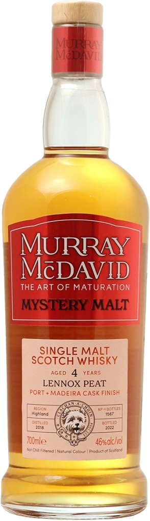 Murray McDavid, Mystery Malt, Lennox Peat 4 Years Old — загадочный односолодовый виски, происхождение которого покрыто вуалью тайны. Что о нем известно? Мюррей МакДэвид обещал использовать для этого релиза сильно торфяной односолодовый виски. Спирт был дистиллирован в 2018 году на винокуренном заводе Хайленда, производящем удивительное множество стилей, так что это может сузить круг поисков... Можете ли Вы догадаться о его происхождении? Команда Мюррей МакДэвид уверена, что около 75% вкуса виски формируется в бочке, поэтому использует самую лучшую древесину: не только для того, чтобы сбалансировать естественный характер драма, но и для того, чтобы постепенно превратить его в нечто действительно экстраординарное. Чтобы сбалансировать силу молодого торфяного солода "Мистери Молт" Леннокс Пит 4-летний, производитель выдерживал виски сначала в хогсхедах из-под бурбона, а затем в двух барриках от партнеров: из-под портвейна Tawny от Caves de Murca и Мадеры от Justino's Madeira Wines. Через 4 года содержимое этих бочек было собрано вместе, чтобы получить очень приятный напиток. Виски был разлит в 2022 году без холодной фильтрации и окрашивания карамелью при крепости 46%. Ограниченный релиз насчитывает всего 756 бутылок.