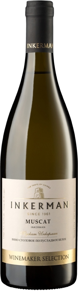 Inkerman, Muskat, Winemaster's Selection — легкое белое полусладкое вино из линейки "Winemaster's Selection", в которой представлены вина в европейском стиле, созданные виноделами завода "Инкерман" в сотрудничестве с международной командой виноделов из ЮАР и Франции. Эти вина производятся из отборного винограда, выращенного на лучших виноградниках компании, расположенных на территории Севастопольского края. Изготовление вин основывается на принципах классического виноделия. Вино создается из винограда сорта Мускат белый, который произрастает на виноградниках компании Инкерман, разбитых на живописных Крымских холмах. Вино демонстрирует легкий, изысканный вкус с утонченными цветочными оттенками, оно отлично освежит жарким летним днем.
