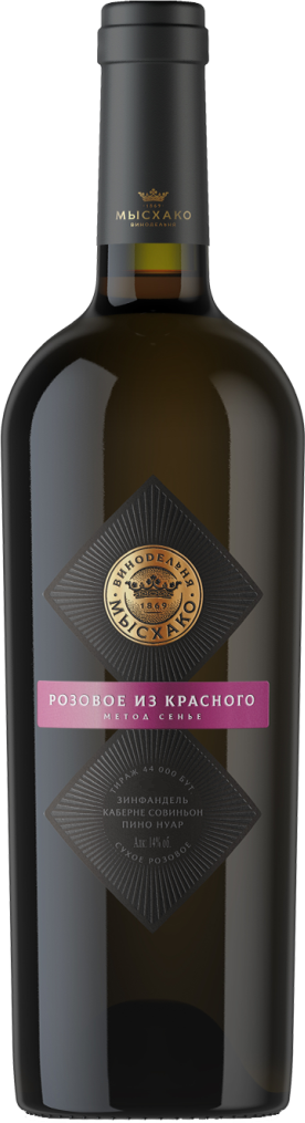 Мысхако, Розовое из Красного — розовое сухое вино из линейки "B*B" (appassimento), созданное из винограда сортов Пино Нуар, Каберне Совиньон и Зинфандель, которые выращены в защищенном географическом регионе Кубань. Сбор урожая проводится лишь по достижении ягодами оптимального уровня спелости. Вино производится с применением метода "Saignеe" (кровопускание). Вино прекрасно сочетается с легкими овощными закусками, рыбой, дарами моря, сырами, десертами и фруктами.