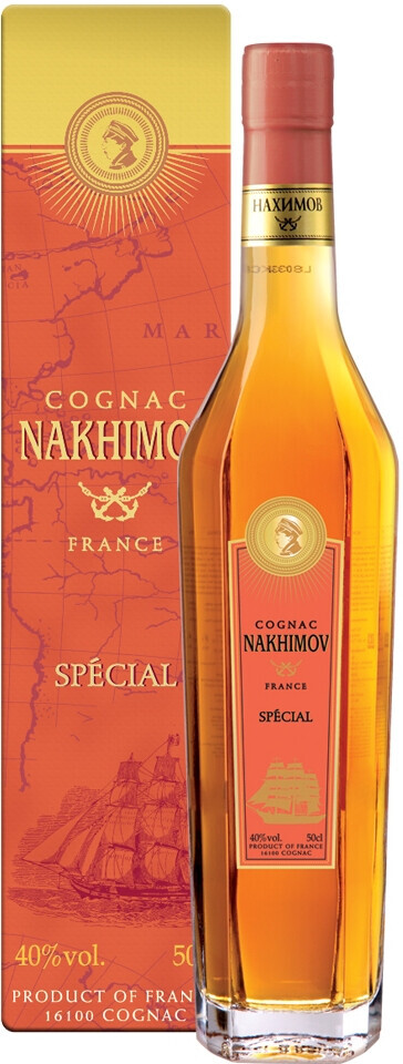 Nakhimov, Special — великолепный выдержанный коньяк класса VS из коньячных спиртов, виноград сортов Уни Блан, Семильон и Коломбар для изготовления которых собирают в субрегионе Пуату-Шаранта, в провинции Коньяк. Коньяк изготовлен из коньячных спиртов, которые выдерживались в дубовых бочках на протяжении 6 и более лет. Линейка коньяков "Нахимов" была создана в честь 200-летнего юбилея великого флотоводца Российской империи, адмирала Павла Степановича Нахимова.