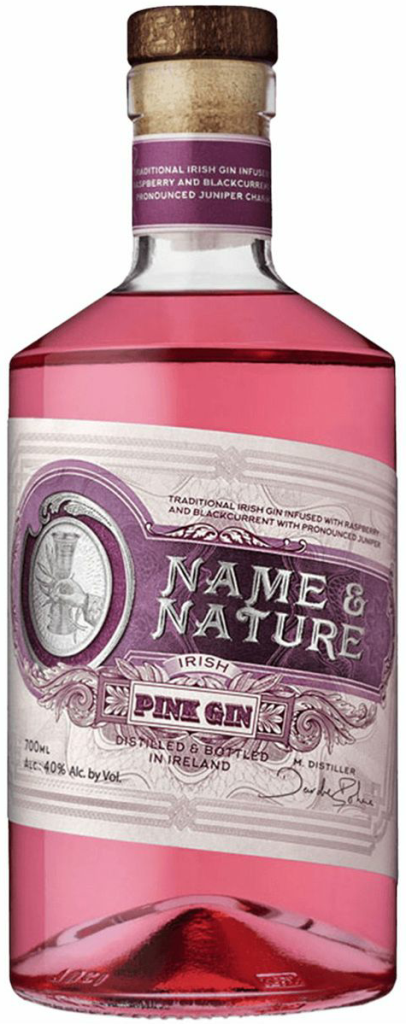 Name & Nature, Irish Pink Gin — яркая вариация классического сухого джина "Name & Nature" с ягодными акцентами. Джин создается по традиционному рецепту из натуральных природных ингредиентов, таких как можжевельник, корень дягиля и ириса, семена кориандра, кардамон, цедра лимона и апельсина. Основу составляет лучший пшеничный спирт. Весь процесс производства джина проходит под чутким руководством ведущих специалистов. Джин прекрасен в чистом виде, а также в качестве ингредиента для коктейлей.