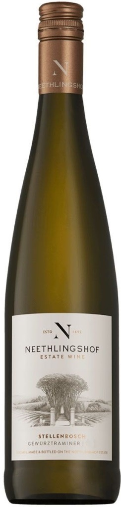 Neethlingshof, Gewurztraminer — белое полусухое вино из коллекции Estate Range, созданной с целью как можно ярче выразить особенности терруара Стелленбош и сортовые характеристики винограда. На виноградниках применяются разумные методы виноградарства, упор делается на медленное созревание винограда для достижения полной зрелости, а винификация нацелена на усиление типичных вкусов и ароматов. Решетчатые лозы Гевюрцтраминера, посаженные в 1988 году и привитые к подвоям Richter 99, произрастают на темно-красных почвах на южных склонах поместья, обращенных к близлежащему заливу Фолс-Бей. Прохладный бриз с залива проходит через виноградники, замедляя созревание винограда, что приводит к более концентрированному вкусу. Виноград был собран вручную. После осветления сока и инокуляции его отборными дрожжами началась ферментация в резервуарах из нержавеющей стали при регулируемой температурой 16-18°C. Брожение длилось 18 дней. Затем вино было подготовлено к розливу по бутылкам.