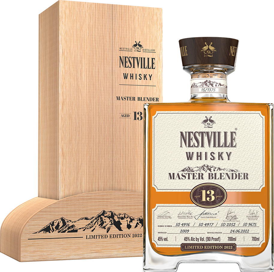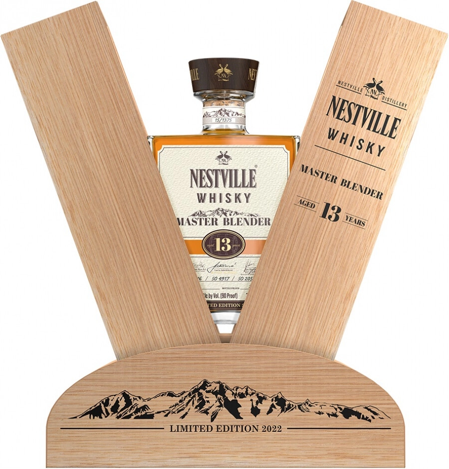 Команда Nestville Distillery с большим удовольствием представляет ограниченную серию "Nestville" Master Blended, первый виски 13-летней выдержки "Нествилле" Мастер Блендер 13-летний, Лимитед Эдишн 2022. Этот редкий релиз представляет собой тщательный купаж дистиллированных в 2009 году спиртов из четырех отобранных вручную бочек. "Nestville" Master Blended 13 Years Old — это лучшее, что Nestville Distillery может предложить ценителям виски в 2022 году. Было разлито всего 1375 бутылок этой ограниченной серии 24 июня 2022 года. Известный критик виски и автор книги "Библия виски" Джим Мюррей наградил это особое издание золотой медалью! Виски выпускается в специальной деревянной коробке, в которую также входит свидетельство о собственности с серийным номером флакона. Несомненно, этот виски — самая большая гордость компании, красота и изящество которой растут с каждым годом.