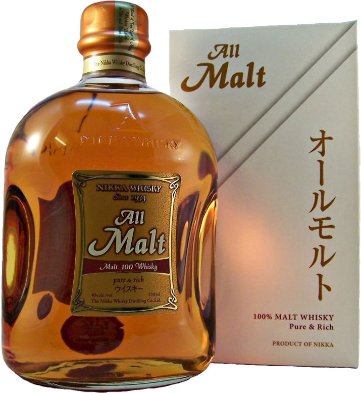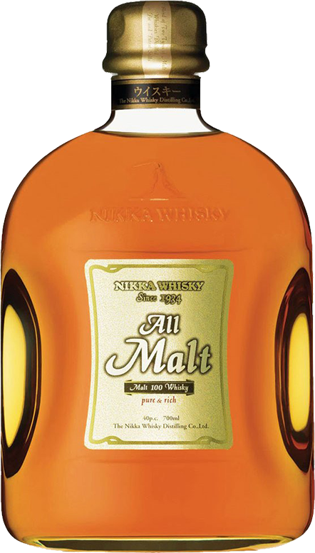 Никка Ол Молт — это японский 100% солодовый виски, который создается из ячменного солода в перегонных кубах. В нем смешано несколько односолодовых виски, изготавливаемых в Японии на разных винокурнях. Этот напиток создавался по уникальной технологии, которая на сегодняшний день есть только в Японии. Часть спиртов виски выгнана в кубах Пот Стилл, а другая часть — в аппаратах непрерывного действия Коффи Стилл. Именно такая технология изготовления обеспечила виски Nikka All Malt глубокий аромат и мягкий вкус.