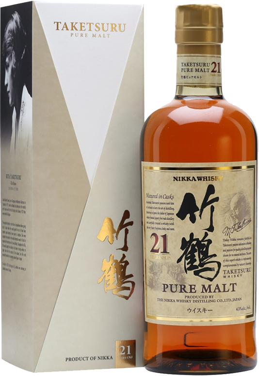 Щедрый, округлый и яркий вкус виски "Taketsuru" Pure Malt 21 Years Old пленяет как впервые познакомившихся с этим напитком, так и опытных экспертов. Свое название виски получил в честь основателя компании Nikka — Masataka Taketsuru. Купаж виски составлен из смеси нескольких солодовых виски винокурен "Yoichi" и "Miyagikyo", которые вызревали в бочках не менее 21 года. Четыре раза он получал звание лучшего купажированного солодового виски в мире на конкурсе "World Whiskies Awards" в 2007, 2009, 2010 и 2011 годах. В 2012 и 2014 годах виски получил золотые медали на конкурсе "International Spirits Challenge". В 2013 году — серебряную медаль на конкурсе "International Spirits Challenge".