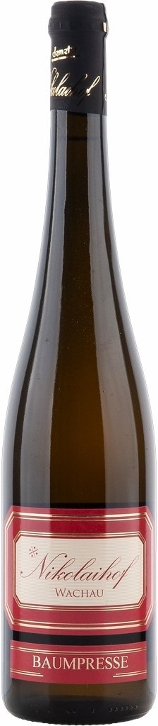 Nikolaihof Wachau, Baumpresse, Riesling — исключительный Рислинг из Вахау. Урожай был выращен на типичных лессово-глинистых и парагнейсовых почвах исключительно с использованием биодинамических методов. Рислинги этого терруара всегда излучают что-то уникальное и особенное. На винодельне Николайхоф находится один из старейших действующих прессов. Каждый год вино производится традиционным способом с использованием ручного пресса длиной 12 метров, которому более 350 лет. Время прессования составляет более 10 часов и является особенно щадящим. Вино разливается в бутылки после пяти с половиной лет созревания в большой нейтральной бочке объемом 2000 литров. Потенциал вина составляет более 25 лет.