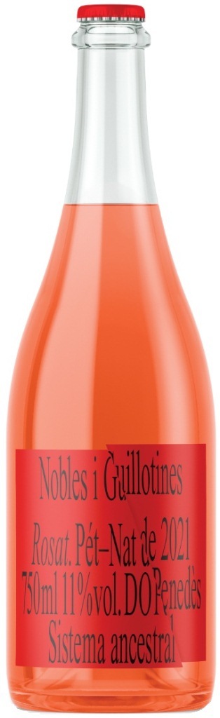 Nobles i Guillotines, Rosado Pet-Nat — игристое вино, изготовленное по старинному методу Пет-Нат без добавления сульфатов. Для изготовления вина производитель использует виноград сорта Темпранильо, который выращивается на виноградниках Пенедеса. 2021 год был засушливым, однако благодаря осенним и зимним запасам воды в почвах лозы смогли отлично проявить себя. Виноград собирается в момент оптимальной зрелости ягод и прессуется целыми гроздьями. Очень медленное брожение протекает при контролируемой температуре в резервуарах из нержавеющей стали. Муст разливается по бутылкам в середине брожения. Из-за особенностей винификации Пет-Нат имеет немного мутный цвет, так как не проходит фильтрацию перед бутилированием и не очищается от осадка, как шампанское.