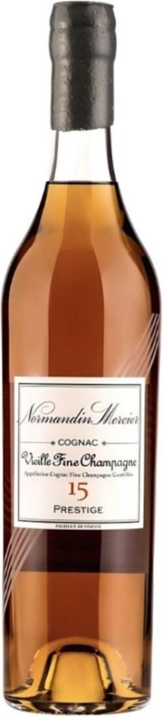 Normandin-Mercier, Prestige — восхитительный, хорошо выдержанный коньяк категории Fine Champagne от уважаемого дома Normandin-Mercier. Фин Шампань всегда представляет собой изысканный купаж спиртов из Гранд и Пти Шампань, в данном случае в соотношении 60/40 соответственно. Спирты из Гранд Шампань наделяют купаж утонченностью, длиной и изысканностью, а коньячные спирты Пти Шампань дарят деликатность и мягкость. Престиж — превосходный коньяк, который прекрасно демонстрирует исключительность востребованного терруара Фин Шампань. Большую часть купажа составляет виноград сорта Уни Блан (до 90%), дополненный небольшим количеством Коломбар и Фоль Блан. Этот коньяк выдерживается 15 лет, в результате чего получается сложный, утонченный характер. Первые 12-14 месяцев коньяк созревает в новых 350-литровых дубовых бочках, а затем переливается в tiercons объемом от 550 до 600 литров. Для дальнейшего созревания используют в основном "рыжие" (старые) бочки, изготовленные из французского дуба, произрастающего в поместье. Коньяк выдерживается вблизи океана, что оказывает влияние на формирование его характера. Естественная регуляция гигрометрии и океанической температуры способствует более быстрому старению коньячных спиртов и проявлению пикантных свежих морских ноток в готовом продукте. Коньяк не окрашивается карамелью и не подвергается холодной фильтрации с целью сохранения полной чистоты ароматов и вкусов. Традиции, стиль и качество — все в одном бокале "Нормандэн-Мерсье".