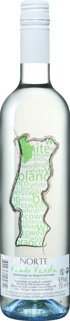 Norte, White Medium Dry, Vinho Verde — свежее белое полусухое вино от Гильерме Перейра (энолог) из винограда сортов Аринту, Лоурейру и Тражадура, который выращивается в регионе Винью Верде на сланцево-глинистых почвах. Близость региона к Атлантическому океану обуславливает его высокопродуктивный терруар. Морские бризы часто приносят с собой дожди, что позволяет урожайности подниматься намного выше, чем в более засушливых регионах Португалии. Собранный в момент оптимальной зрелости виноград подвергается тщательной сортировке и гребнеотделению. Затем ягоды мягко прессуются пневматическим прессом, а полученный сок декантируется. Ферментация протекает при контролируемой температуре 15-17°С в емкостях из нержавеющей стали и принудительно останавливается по достижении оптимального уровня остаточного сахара. Перед бутилированием вино фильтруется.