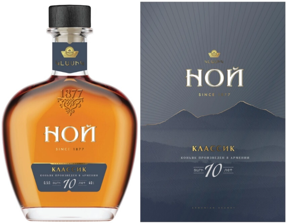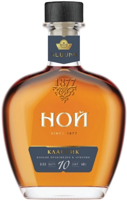 Коньяк "Ной Классик" 10-летний — один из лучших в своей категории. Он назван в честь классической архитектуры Эриваньской Крепости XVI века, которая была восстановлена архитектором Рафаелом Исраеляном. Коньяк производится из региональных сортов винограда — Воскеат, Мсхали, Гарандмак, выращенного в Араратской долине. При изготовлении коньяка используется двойная дистилляция по шарантскому методу, затем напиток выдерживается как минимум 10 лет в дубовых бочках. Купаж данного коньяка содержит высокий процент старых коньяков, поэтому он имеет более насыщенный аромат, чем другие коньяки этой категории. "Ной" Классик разливается в кристально чистую оригинальную бутылку "Helios", которая идеально подчеркивает качество этого изысканного коньяка.