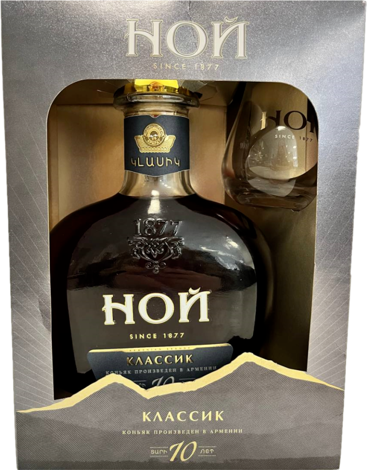 Коньяк "Ной Классик" 10-летний — один из лучших в своей категории. Он назван в честь классической архитектуры Эриваньской Крепости XVI века, которая была восстановлена архитектором Рафаелом Исраеляном. Коньяк производится из региональных сортов винограда — Воскеат, Мсхали, Гарандмак, выращенного в Араратской долине. При изготовлении коньяка используется двойная дистилляция по шарантскому методу, затем напиток выдерживается как минимум 10 лет в дубовых бочках. Купаж данного коньяка содержит высокий процент старых коньяков, поэтому он имеет более насыщенный аромат, чем другие коньяки этой категории. "Ной" Классик разливается в кристально чистую оригинальную бутылку "Helios", которая идеально подчеркивает качество этого изысканного коньяка.
