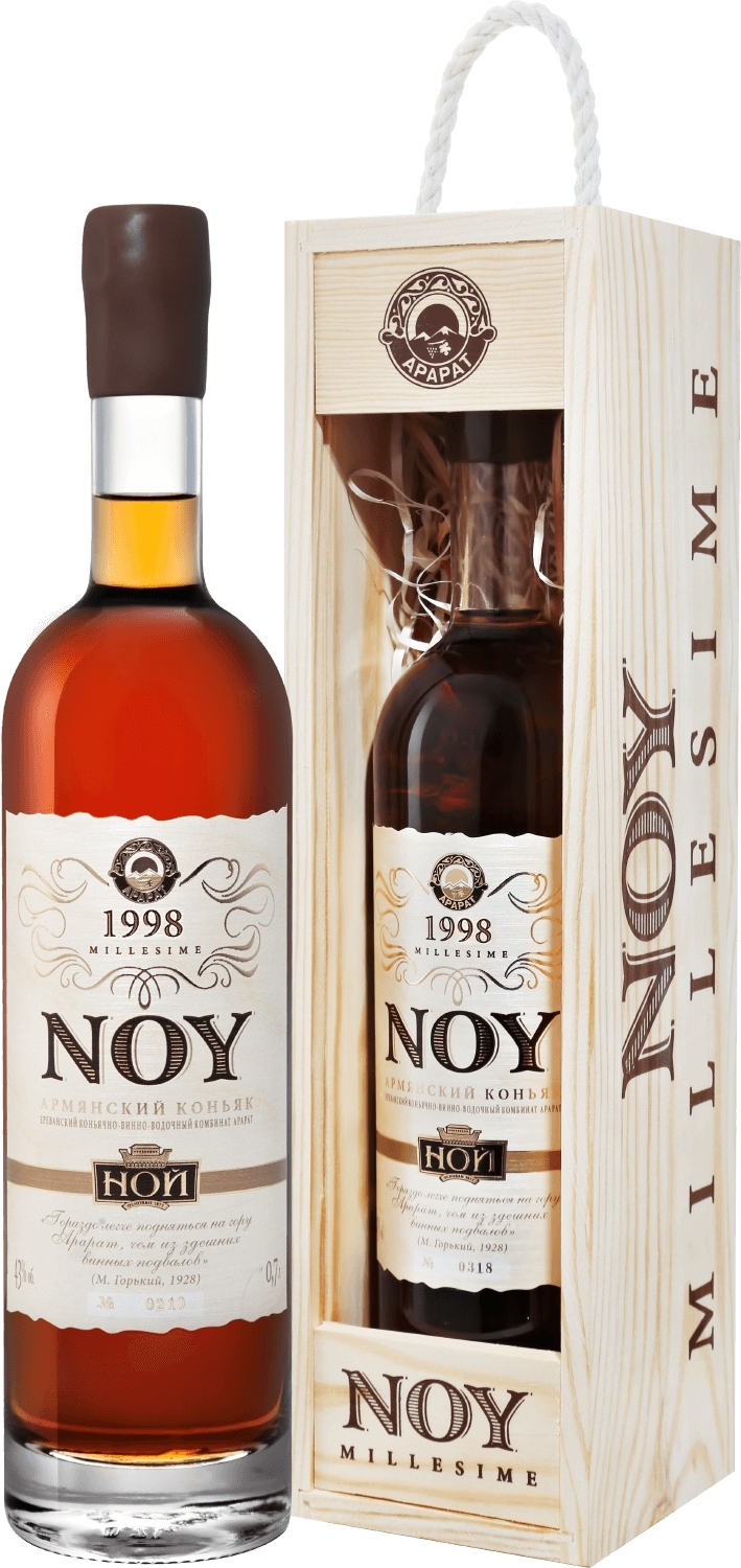 Ной, Миллезим, 1998 — элегантный, мощный, глубокий, зрелый выдержанный коньяк, изготовленный из винограда урожая 1998 года. При производстве коньяка используется виноград автохтонных сортов: Воскеат, Гаран дмак, Чилар, Мсхали, Кангун, Бананц, Кахет, выращенных в Араратской долине. Виноградный сок проходит дистилляцию в шарантских перегонных кубах. Полученные спирты выдерживаются в бочках из иберийского (черного карабахского) дуба в исторических погребах компании, которые называются "Райские комнаты".