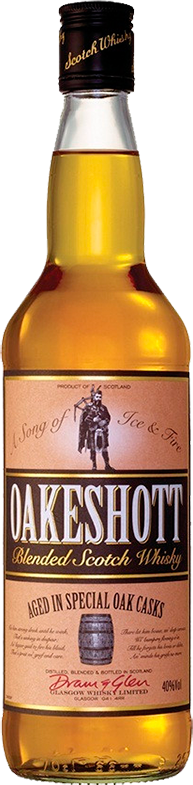 Издавна шотландский виски изготавливали монахи и использовали его исключительно в лечебных целях. Но очень скоро виски вышел далеко за пределы монастырских стен и прижился в фермерских хозяйствах. Настоящие ценители виски могут по вкусу легко определить место производства этого напитка. Виски с острова Айла пользуется популярностью благодаря уникальному подкопченному вкусу. Достойным островным представителем является купажированный шотландский виски "Oakeshott". В купаж напитка входит 15% односолодового виски. Он создается по рецепту шотландских мастеров и в течение 3-х лет выдерживается в специальных дубовых бочках.