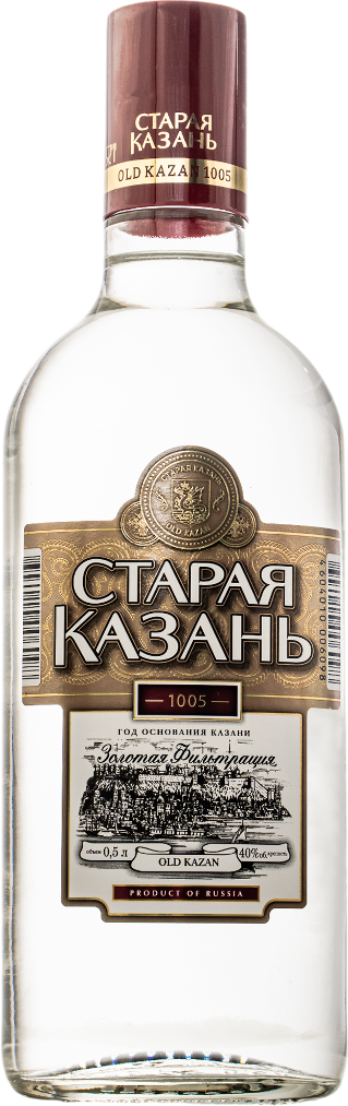Водка "Старая Казань" Люкс, Золотая фильтрация изготавливается на Казанском ликероводочном заводе по классической технологии производства водок. В состав водки входят: вода питьевая исправленная, спирт класса "Люкс", сахарный сироп, настой спиртованный пшена и углеводный модуль "Алколюкс", который ослабляет токсическое действие алкоголя на печень и слизистую желудка. Для фильтрации водки используется золотой фильтр, благодаря которому достигается особая мягкость и абсолютная гармония вкуса. На бутылке изображен фрагмент панорамы старого города (Казани) и год его основания (1005-й).