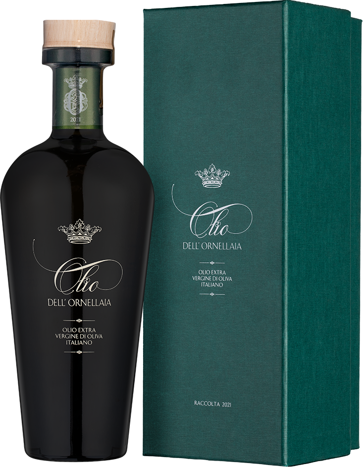 Olio dell'Ornellaia, Extra Vergine — оливковое масло "экстра верджин" высочайшего класса, сертифицированное как органическое. Для изготовления масла используются оливки сортов Леччино, Морайоло и Франтойо, которые собираются с деревьев старше 30 лет. Оливковые рощи компании Ornellaia разбиты на высоте 300-450 метров над уровнем моря, на глинисто-илистой почве с включением известняка. Урожай собирается вручную и прессуется в тот же вечер при 26-27°С. Сбор урожая длится две недели. Партии масла из разных сортов попадают в окончательный купаж после тщательной дегустации. Затем масло проходит легкую фильтрацию и разливается в бутылки.